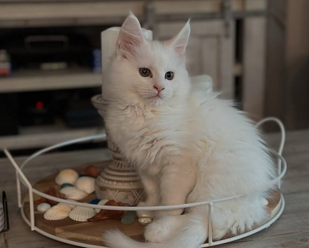 Meet Jimmy, a 10-week-old male Mainecoon kitten full of charm and affection. With his soft, fluffy coat and striking blue eyes, Jimmy loves to cuddle and purr his way into your heart. He’s playful, gentle, and already shows that signature Mainecoon sweetness — following you around and melting in your arms when held. Jimmy is the perfect little companion for a loving home.